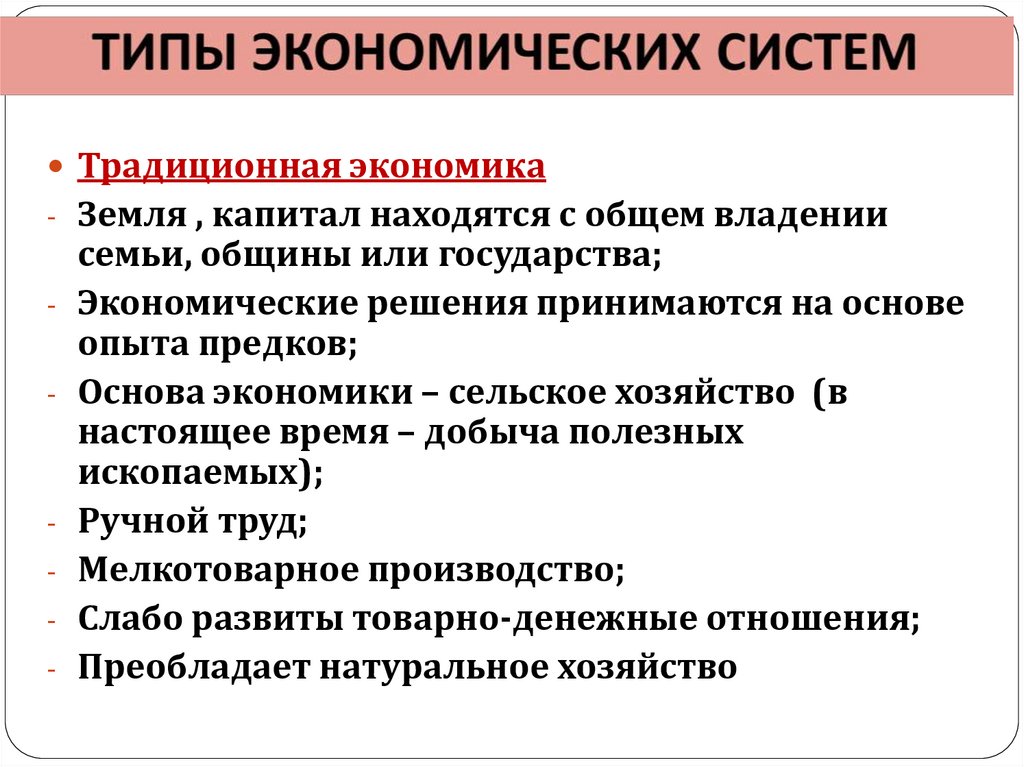 Традиционная экономика- Земля , капитал находятся с общем владении