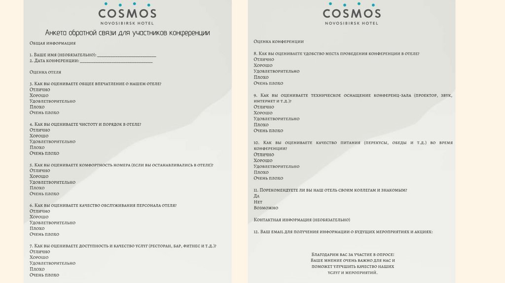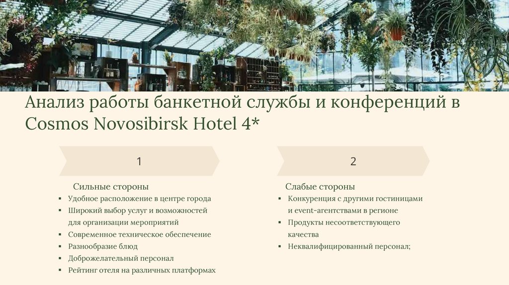 Анализ работы банкетной службы и конференций вCosmos Novosibirsk Hotel 4*