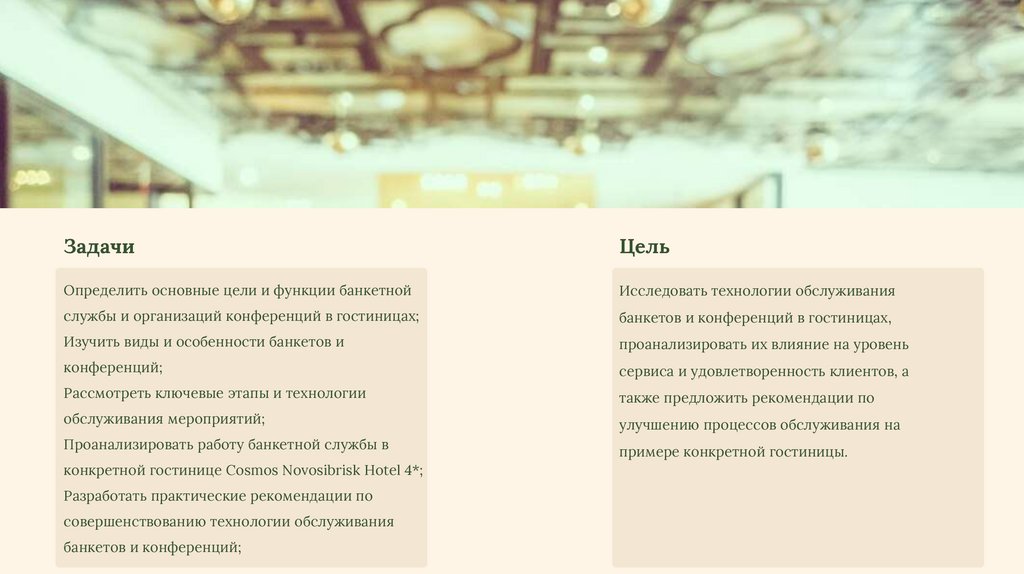 банкетов и конференций в гостиницах,
