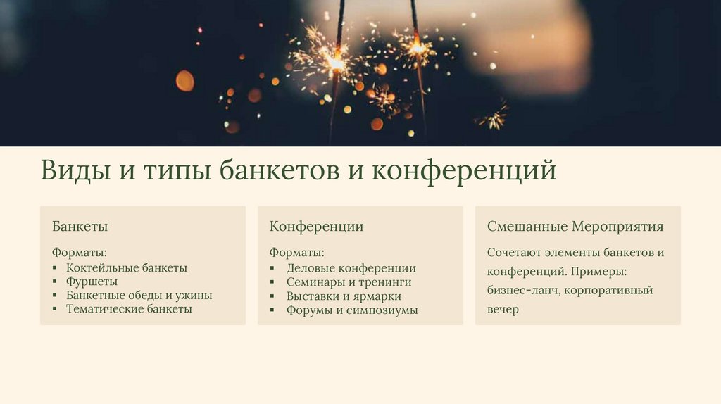 Виды и типы банкетов и конференцийБанкеты