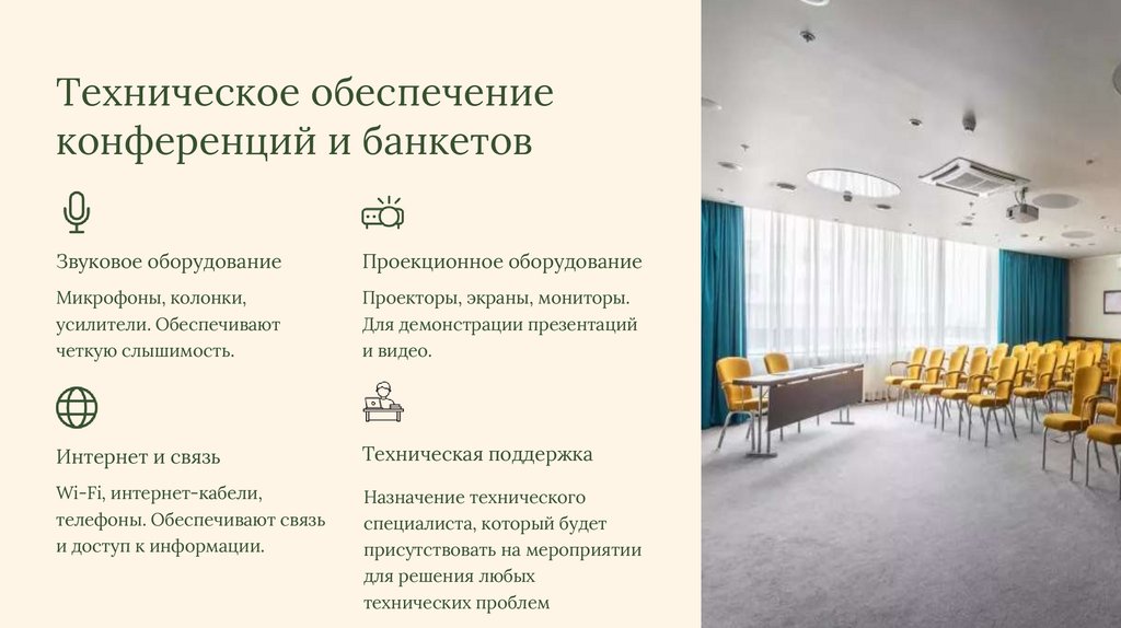службы и организаций конференций в гостиницах;