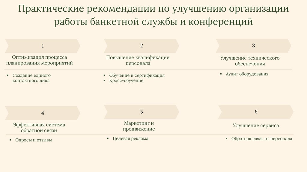 Практические рекомендации по улучшению организацииработы банкетной службы и конференций