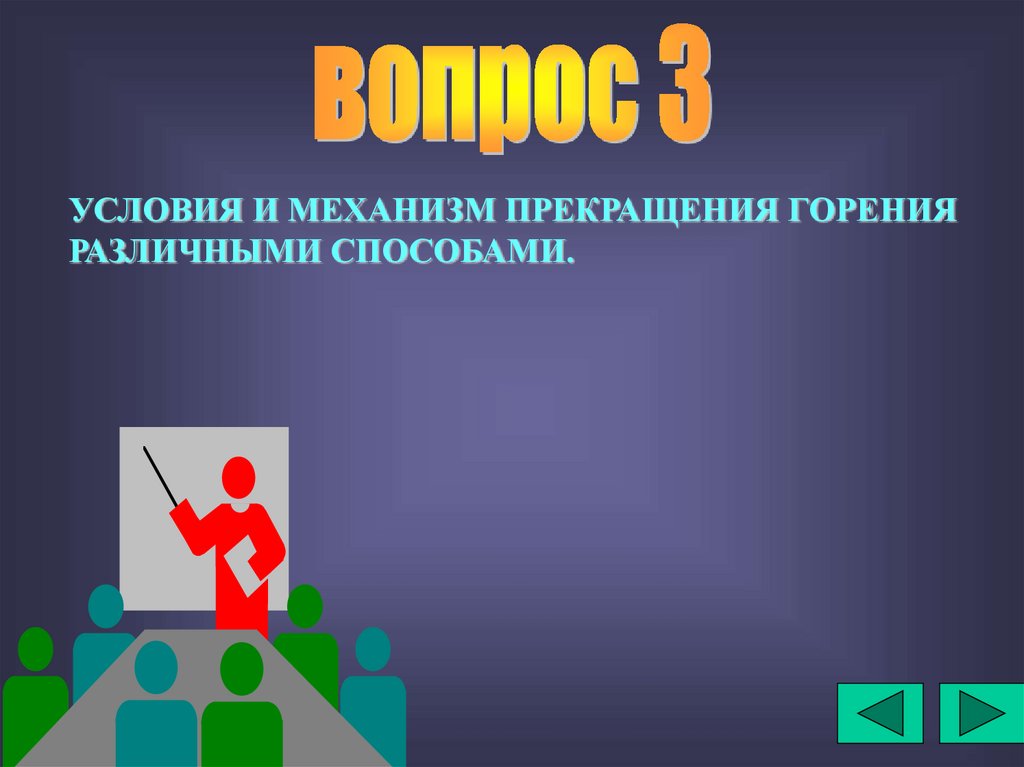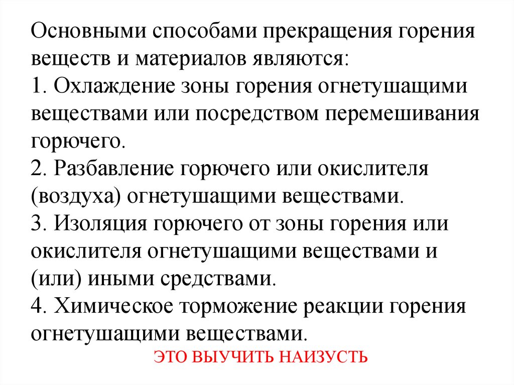 воздуха. Чтобы прекратить горение, надо остановить химическую реакцию в его зоне.