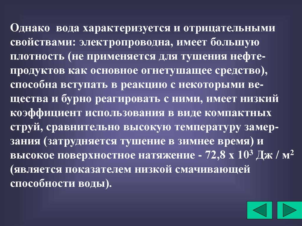 более электропроводна, чем вода. Поэтому тушение ею