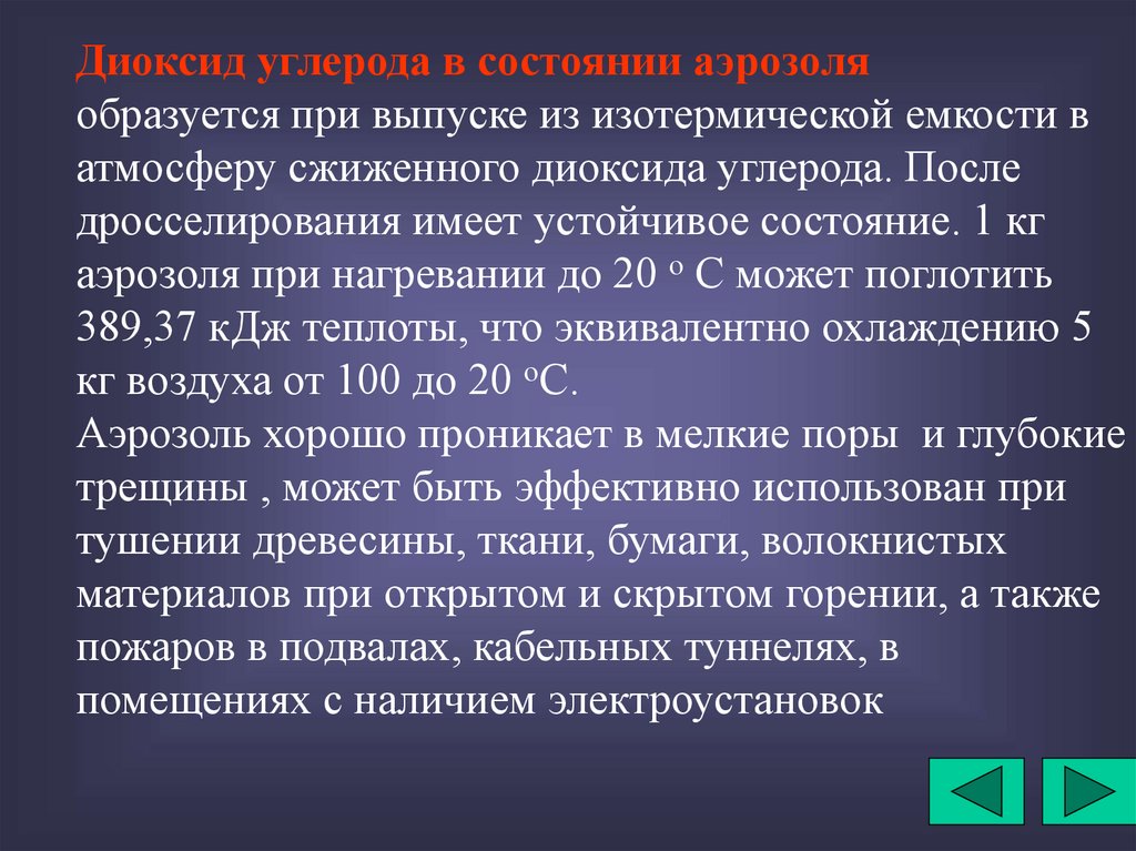 Диоксид углерода в состоянии аэрозоляобразуется при выпуске из изотермической емкости в