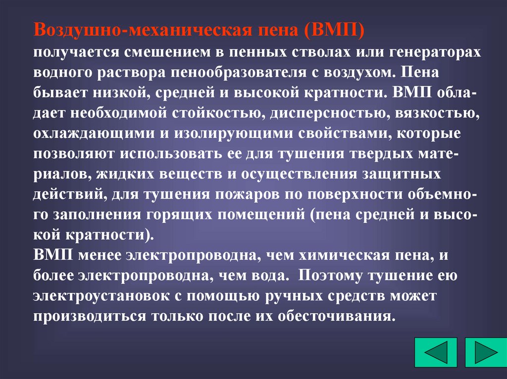 бывает низкой, средней и высокой кратности. ВМП обладает необходимой стойкостью, дисперсностью, вязкостью,