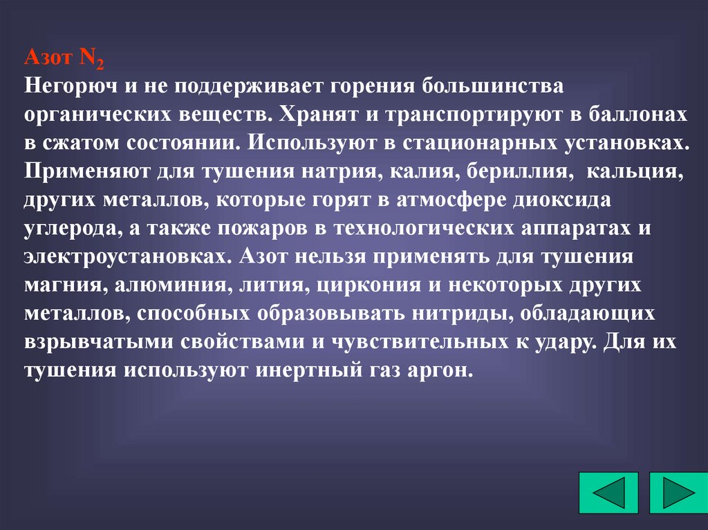 электроустановках. Азот нельзя применять для тушения