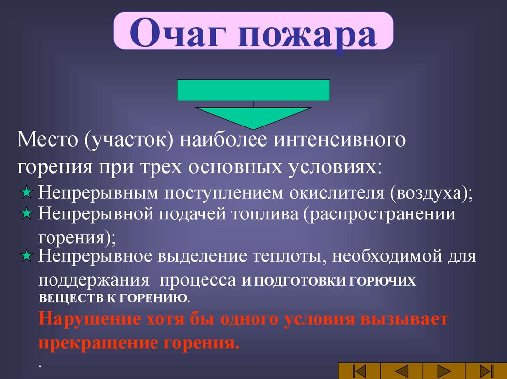 Очаг пожараМесто (участок) наиболее интенсивного