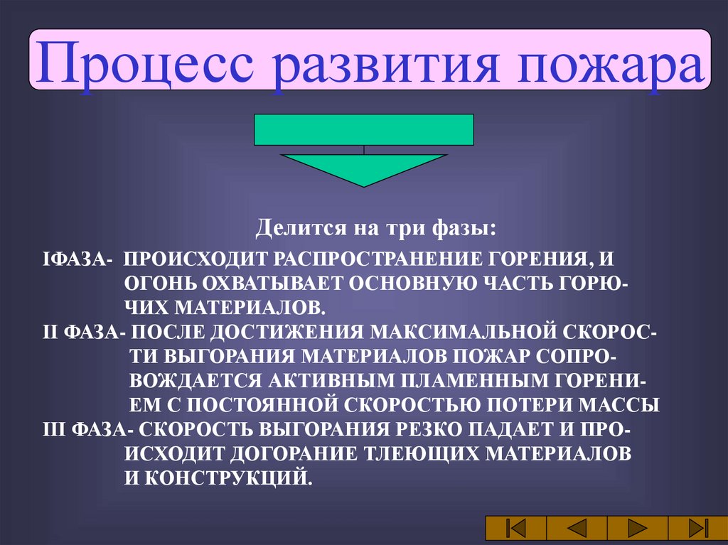 Процесс развития пожараДелится на три фазы: