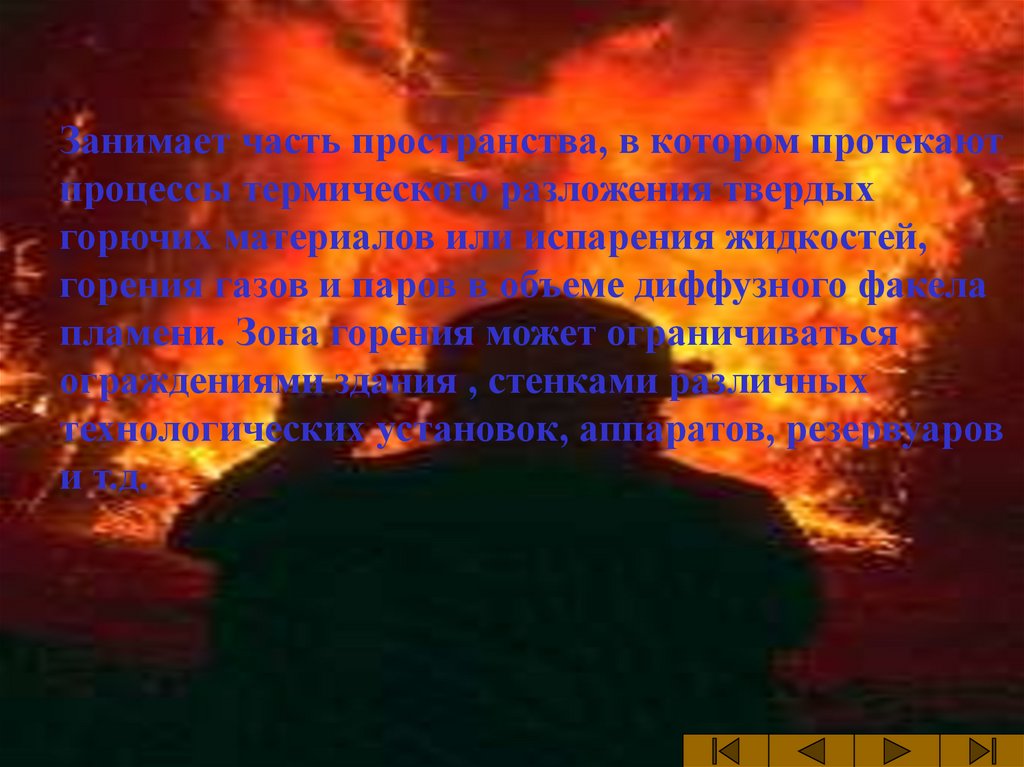 Зона горенияЗанимает часть пространства, в котором протекают
