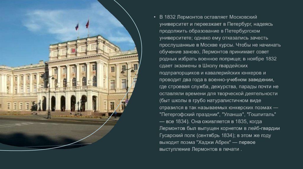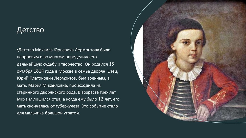 Детство• Детство Михаила Юрьевича Лермонтова было
