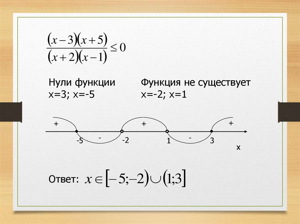 неравенства – дробь, то находят нули числителя и нули знаменателя.