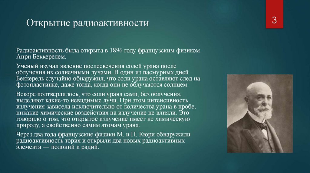 Открытие радиоактивностиРадиоактивность была открыта в 1896 году французским физиком
