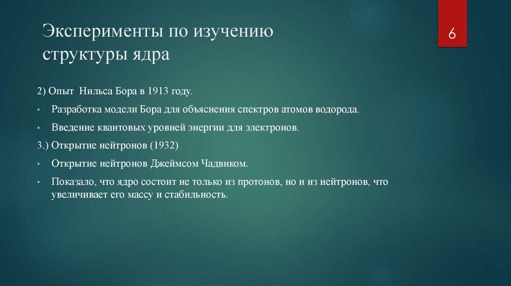 Показало, что ядро состоит не только из протонов, но и из нейтронов, что