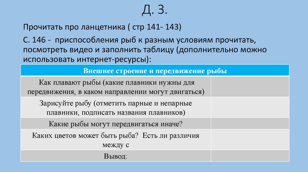 Д. З.Прочитать про ланцетника ( стр 141- 143)