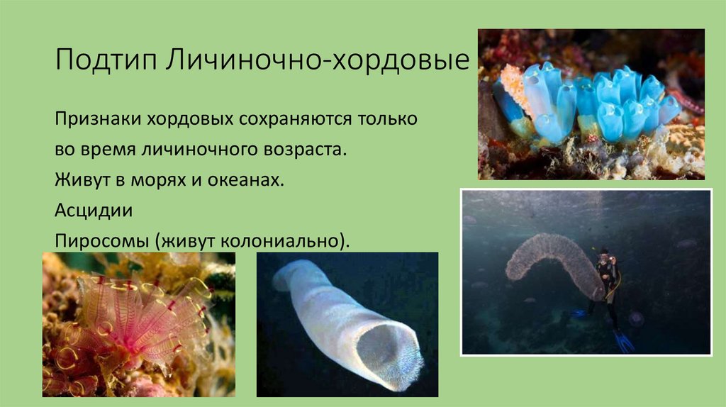 Подтип Личиночно-хордовыеПризнаки хордовых сохраняются только
