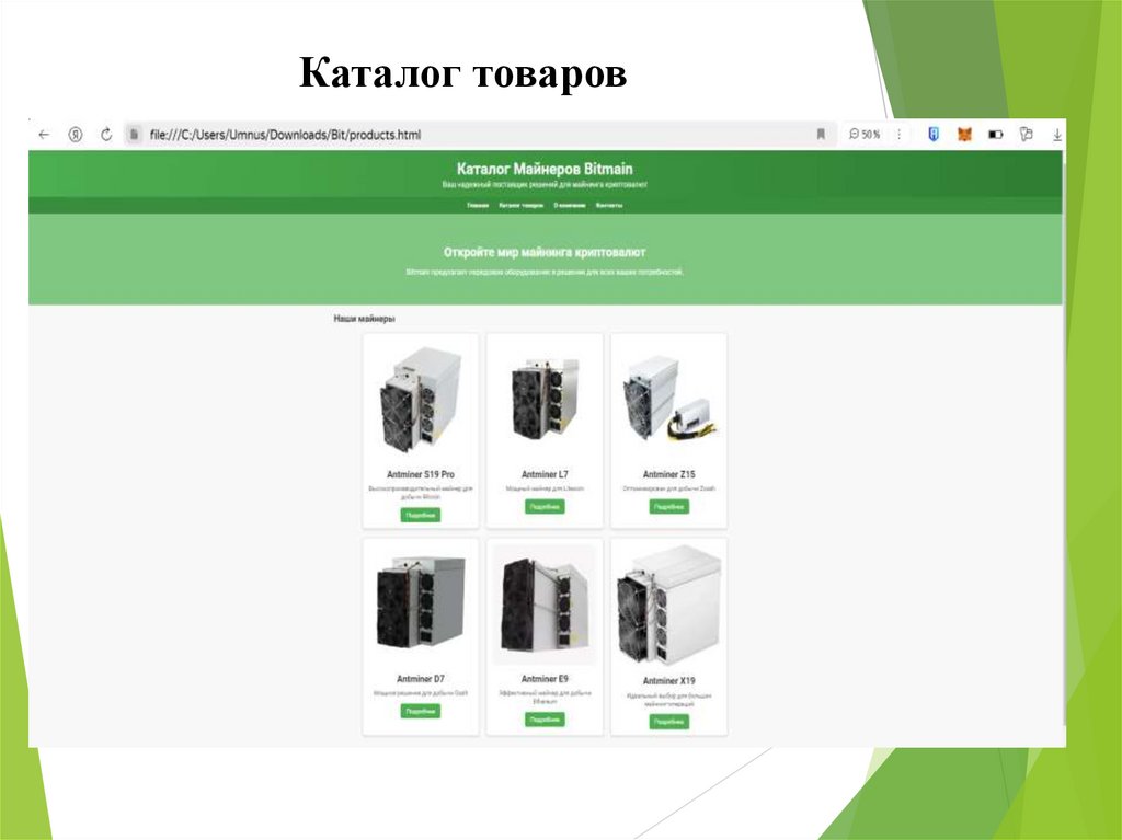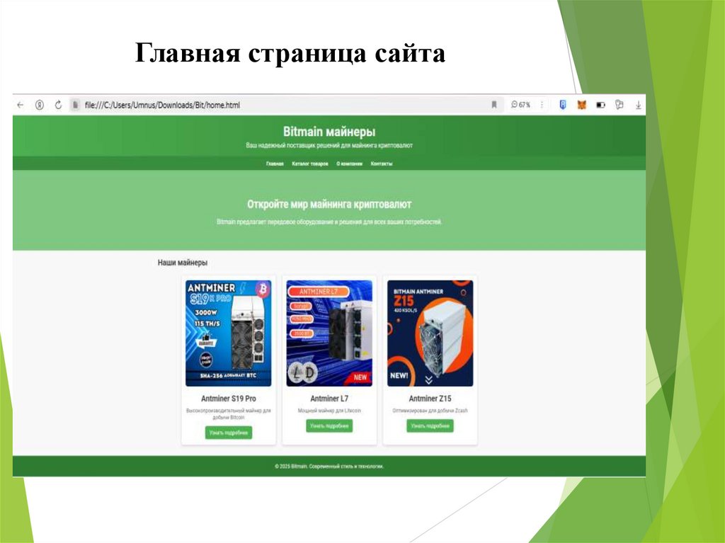 Разработка сайта оператора промышленного майнинга «BitMain». Выпускная квалификационная работа