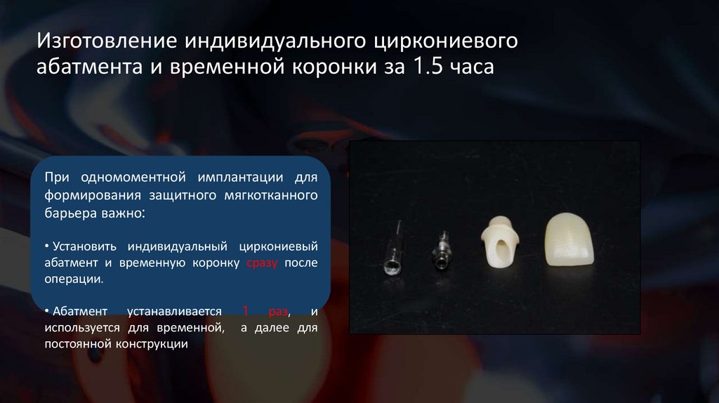 Изготовление индивидуального циркониевогоабатмента и временной коронки за 1.5 часа