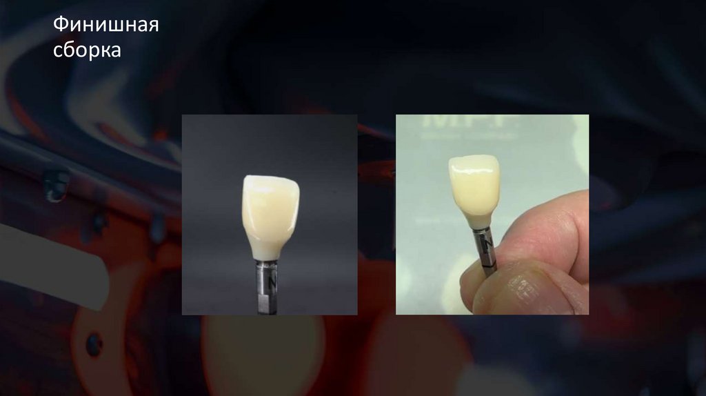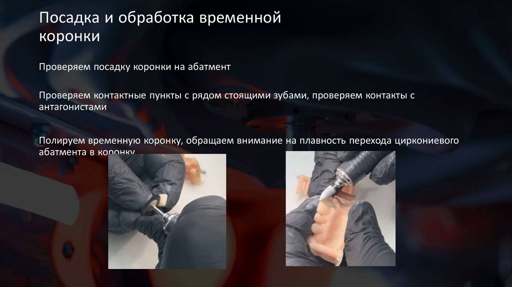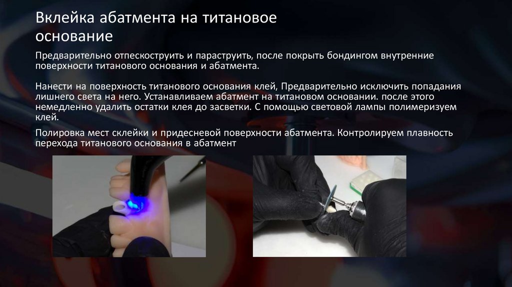 Полировка мест склейки и придесневой поверхности абатмента. Контролируем плавность