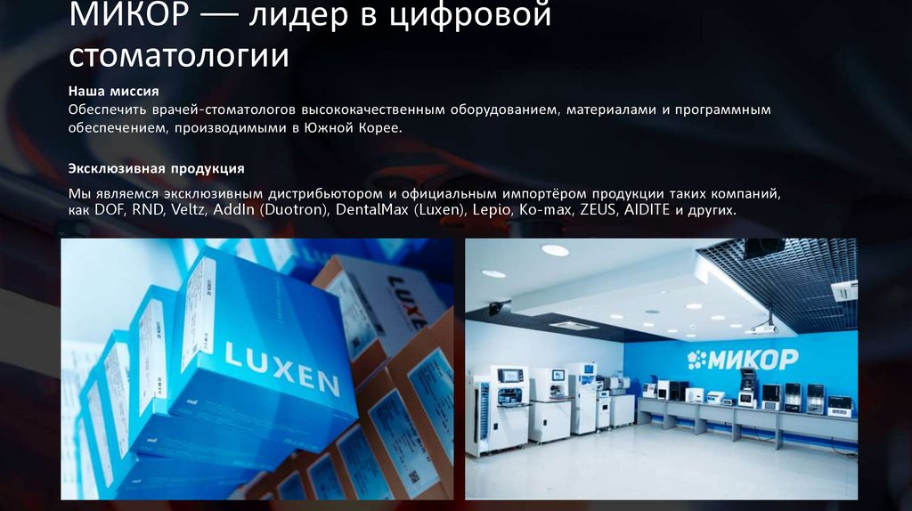 как DOF, RND, Veltz, AddIn (Duotron), DentalMax (Luxen), Lepio, Ko-max, ZEUS, AIDITE и других.