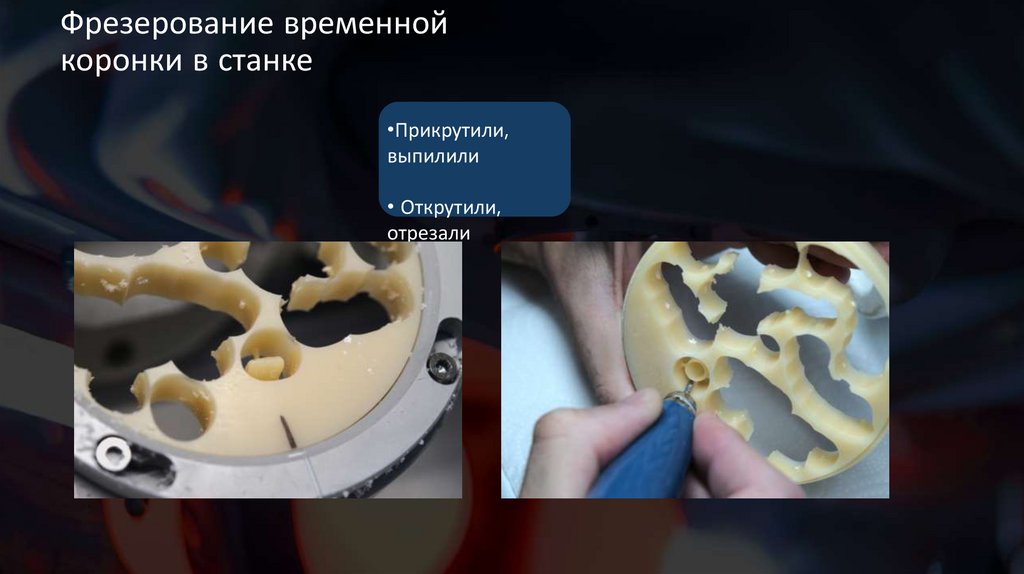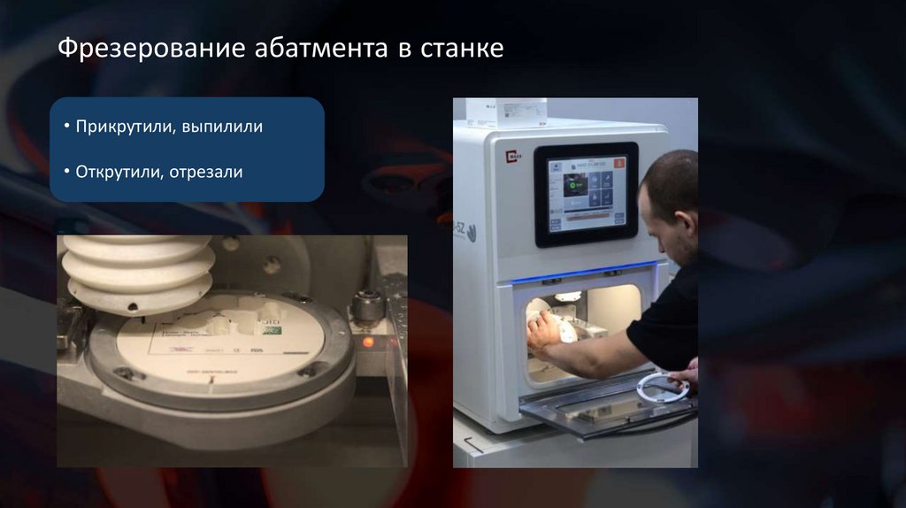 Фрезерование абатмента в станке• Прикрутили, выпилили