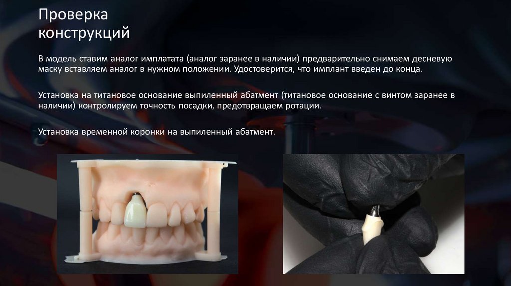 наличии) контролируем точность посадки, предотвращаем ротации.