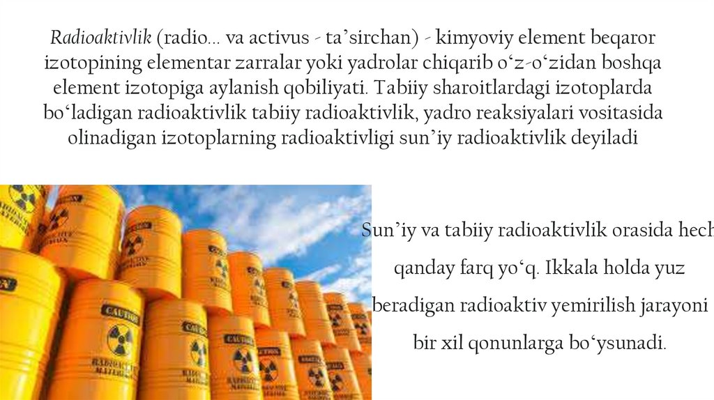 Sunʼiy va tabiiy radioaktivlik orasida hech