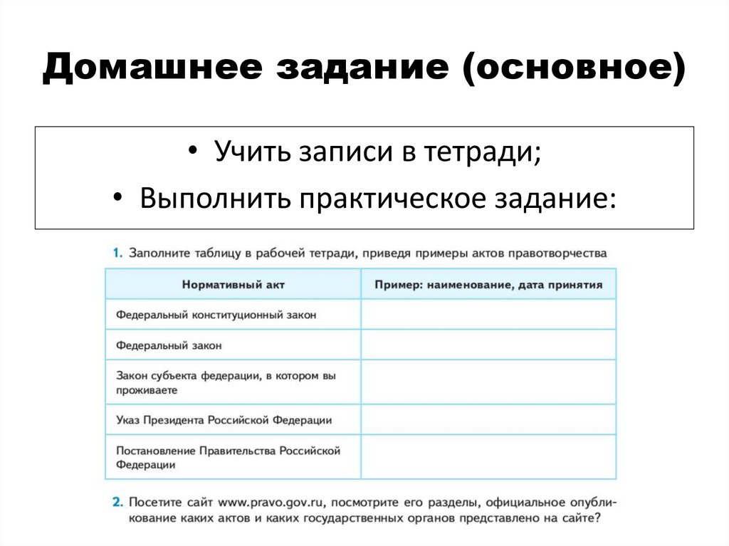 Правотворчество. Законодательный процесс. (10 класс)
