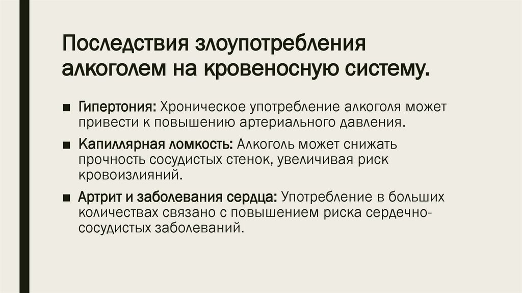 Последствия злоупотребленияалкоголем на кровеносную систему.