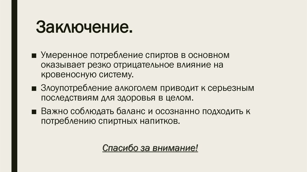 Заключение.■ Умеренное потребление спиртов в основном