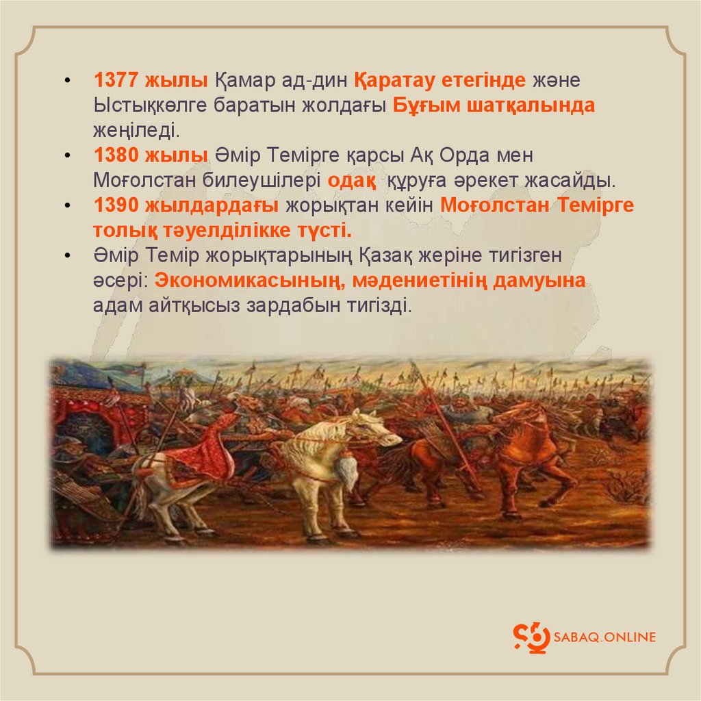 Әмір Темір жорықтарының Қазақ жеріне тигізген