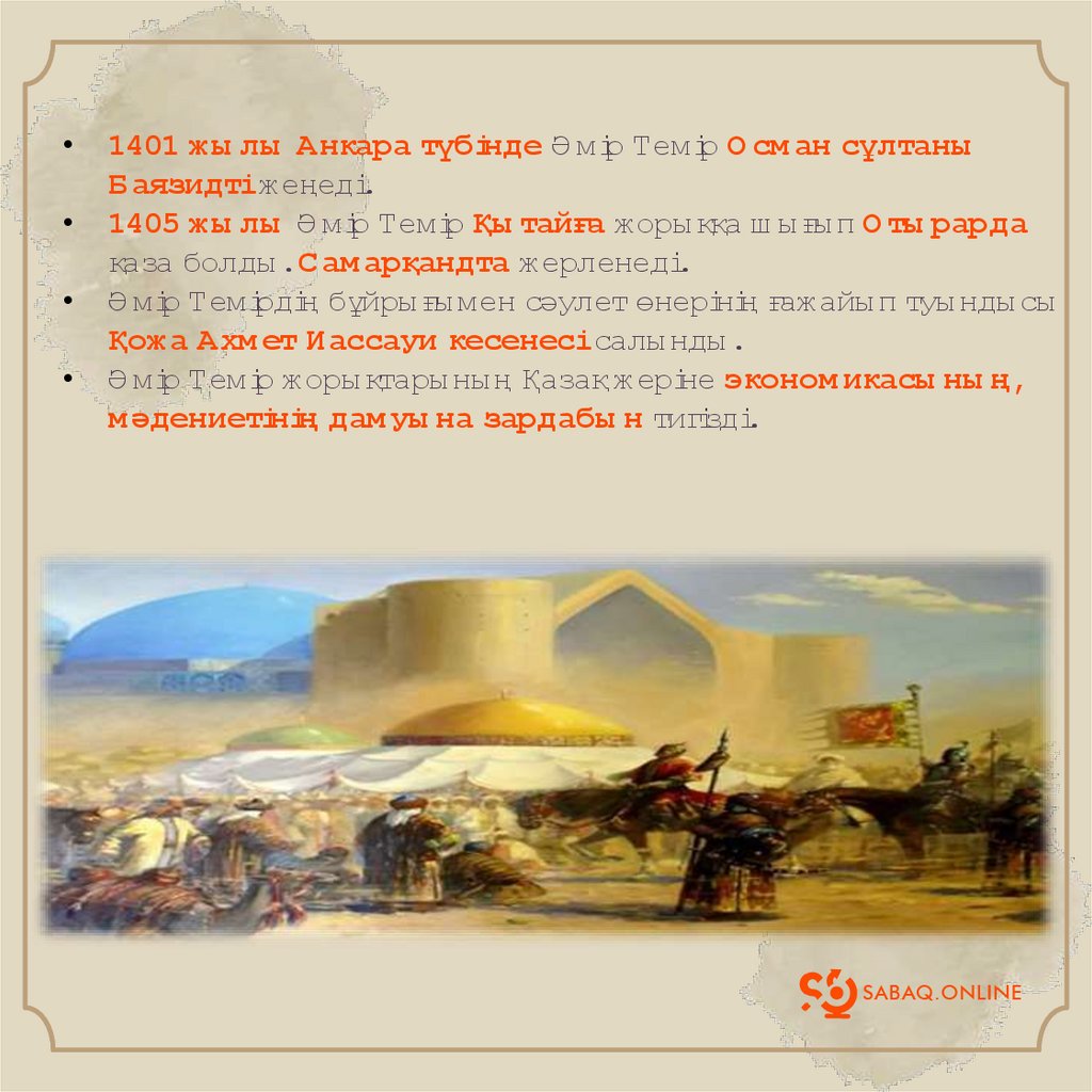 Қазақстан тарихыӘмір Темір шапқыншылығы