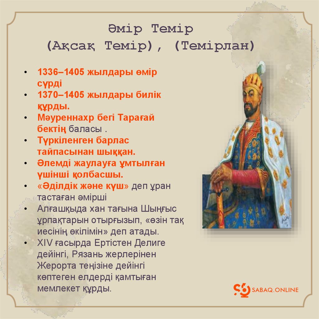 Әмір Темір(Ақсақ Темір), (Темірлан)
