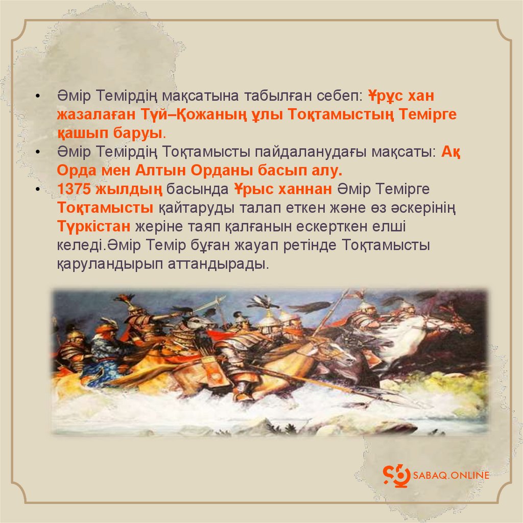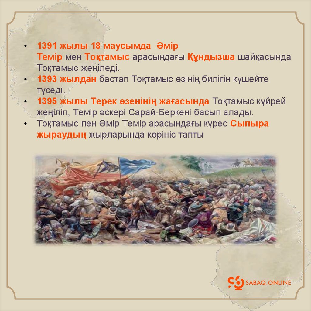 келеді.Әмір Темір бұған жауап ретінде Тоқтамысты