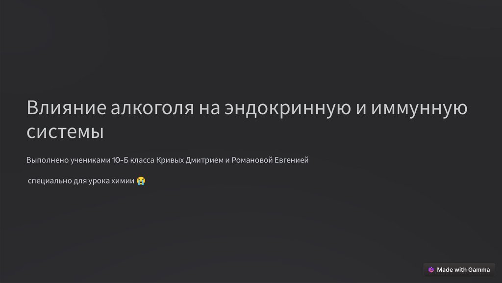 Влияние алкоголя на эндокринную и иммуннуюсистемы