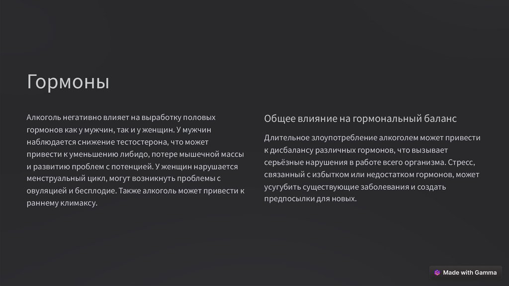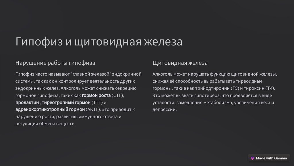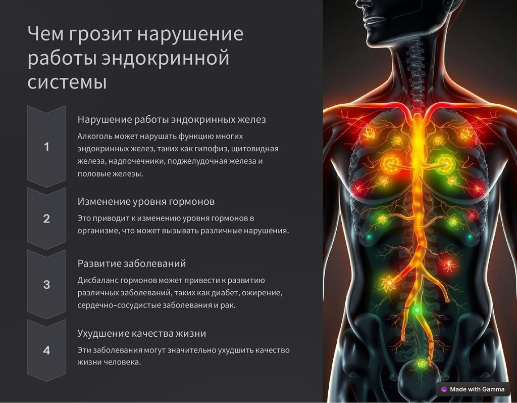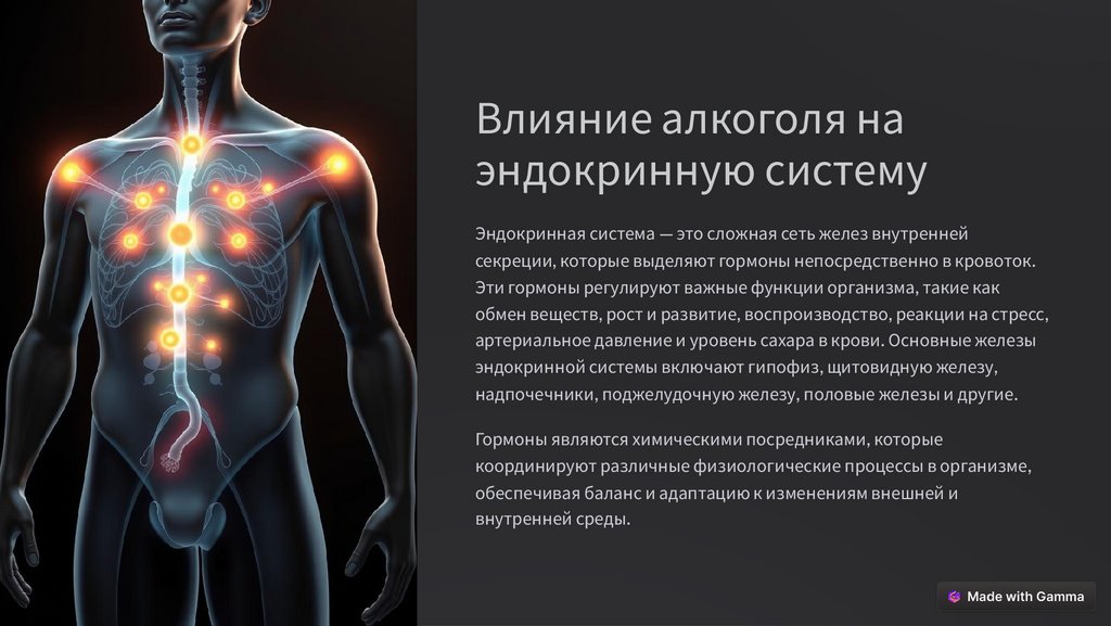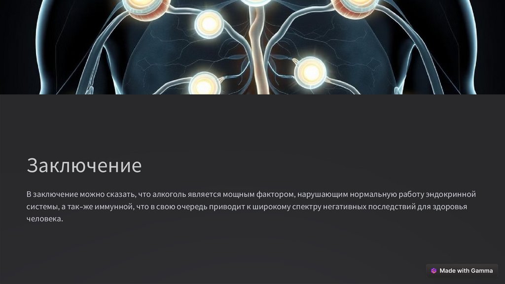 ЗаключениеВ заключение можно сказать, что алкоголь является мощным фактором, нарушающим нормальную работу эндокринной