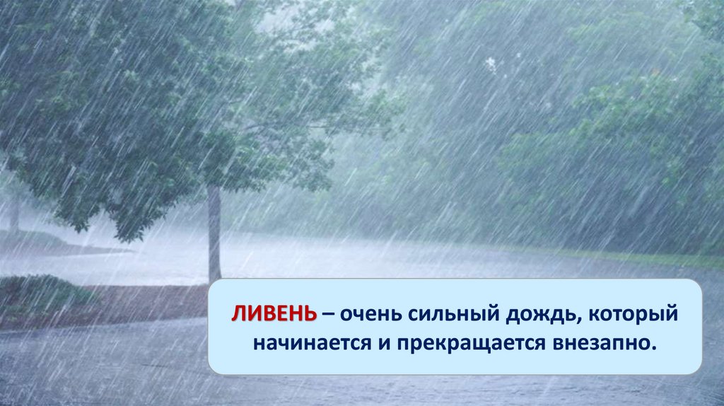 ЛИВЕНЬ – очень сильный дождь, которыйначинается и прекращается внезапно.