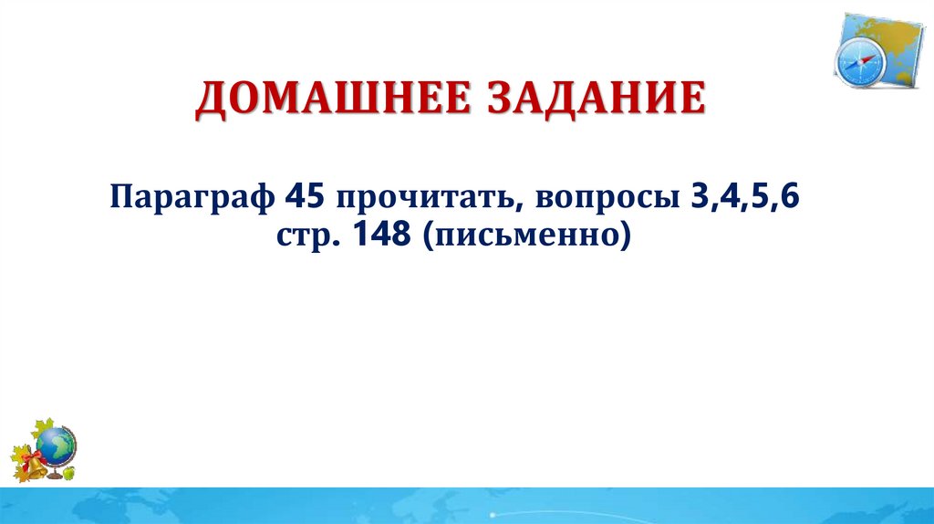 ДОМАШНЕЕ ЗАДАНИЕПараграф 45 прочитать, вопросы 3,4,5,6