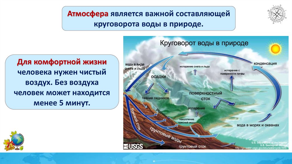 Атмосфера является важной составляющейкруговорота воды в природе.