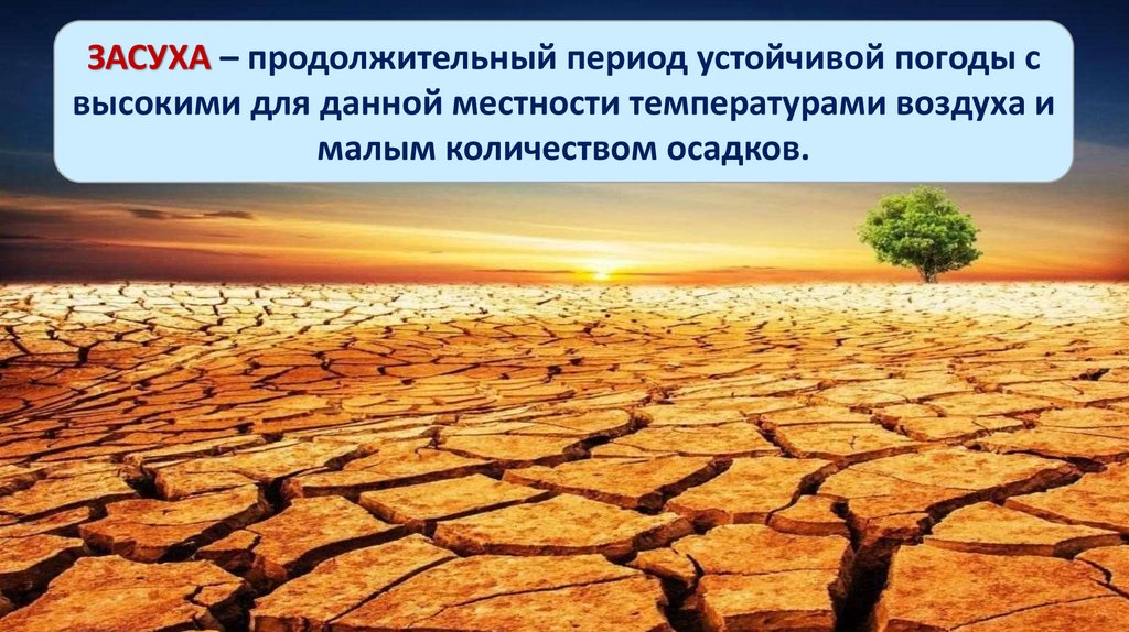 ЗАСУХА – продолжительный период устойчивой погоды свысокими для данной местности температурами воздуха и