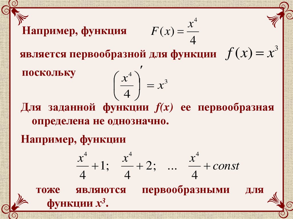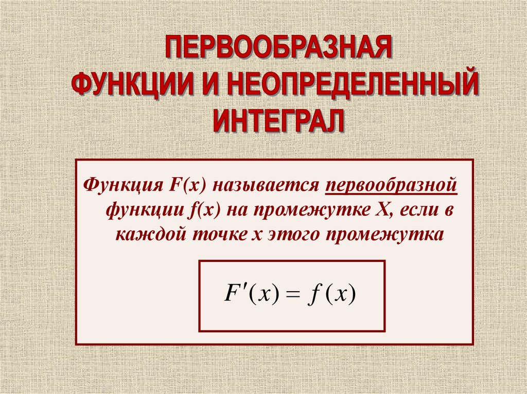 Функция F(x) называется первообразнойфункции f(x) на промежутке Х, если в
