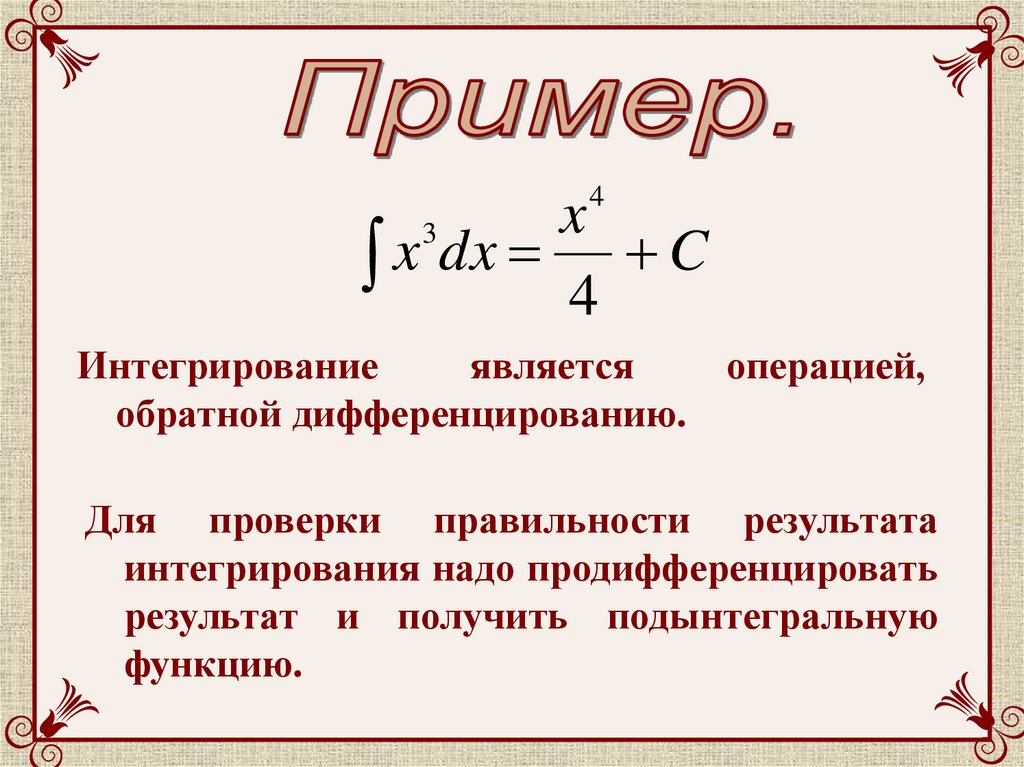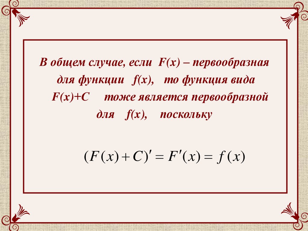 В общем случае, если F(x) – первообразнаядля функции f(x), то функция вида