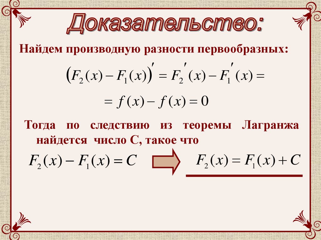 Найдем производную разности первообразных:F2 ( x) F1 ( x) F2 ( x) F1 ( x)