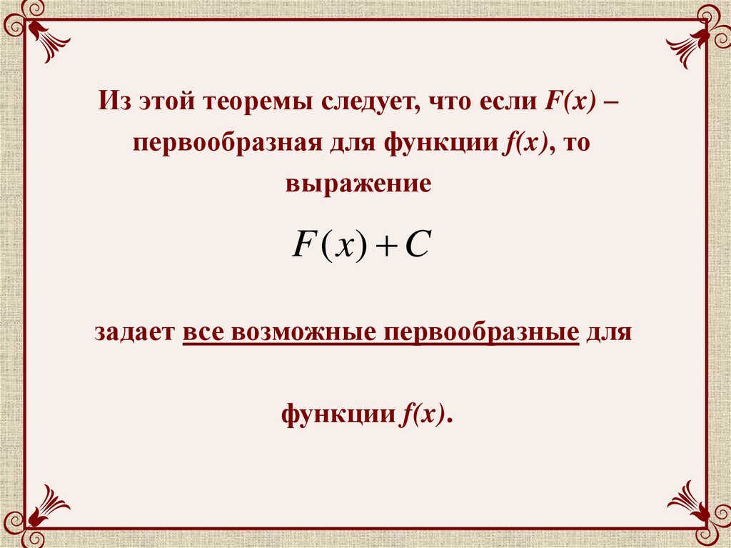 Из этой теоремы следует, что если F(x) –первообразная для функции f(x), то
