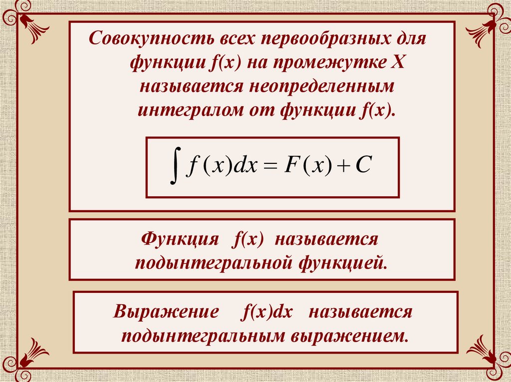 Совокупность всех первообразных дляфункции f(x) на промежутке Х