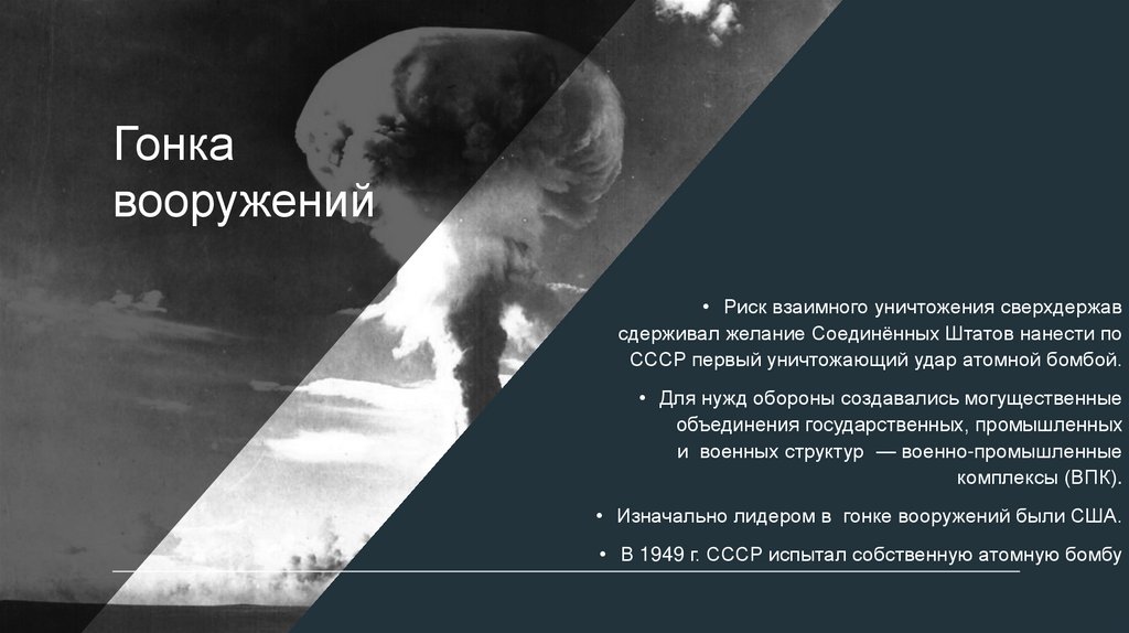 • В 1949 г. СССР испытал собственную атомную бомбу