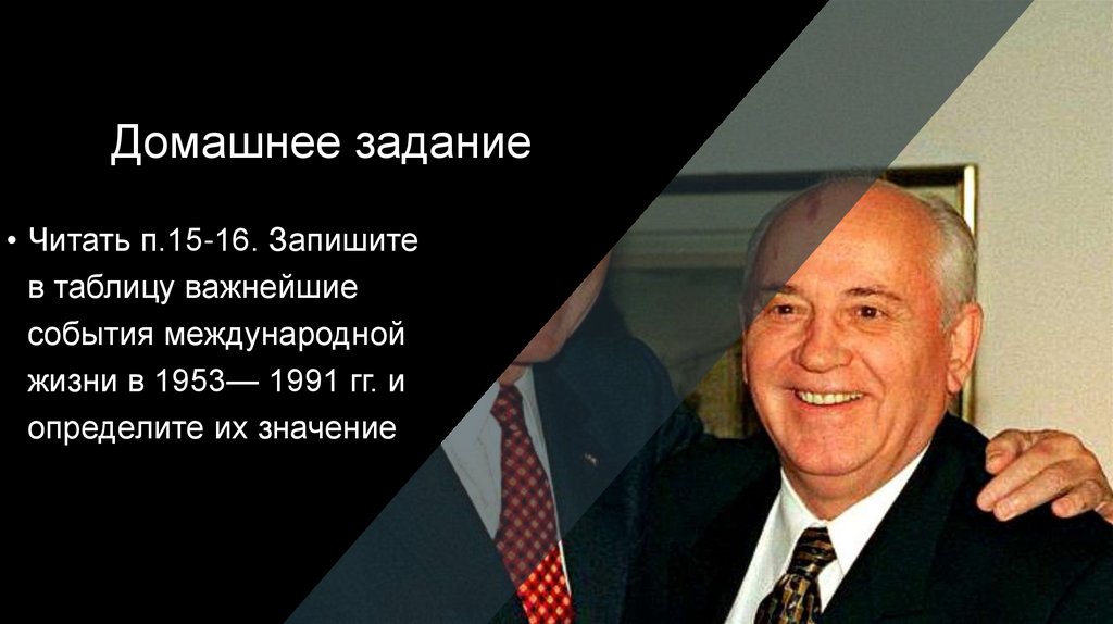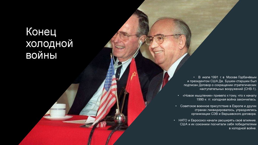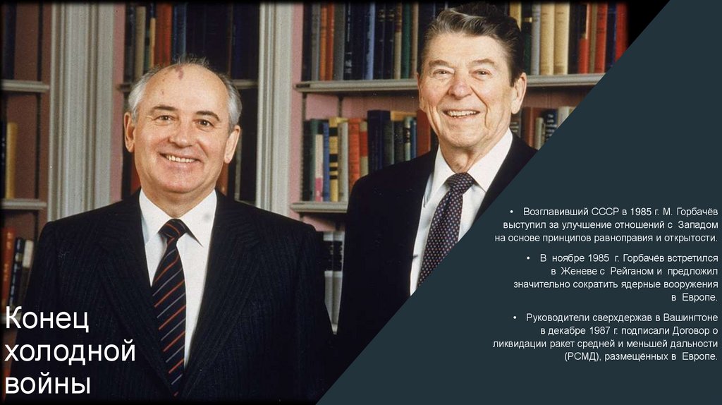 • Возглавивший СССР в 1985 г. М. Горбачёввыступил за улучшение отношений с Западом