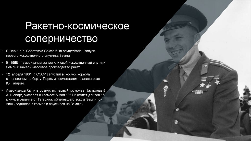 А. Шепард оказался в космосе 5 мая 1961 г. (полёт длился 15
