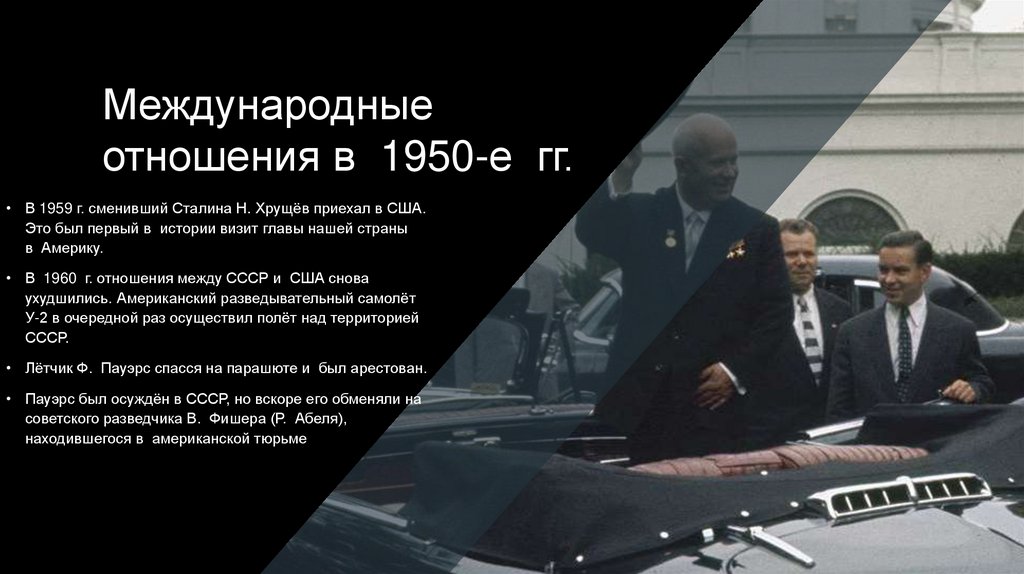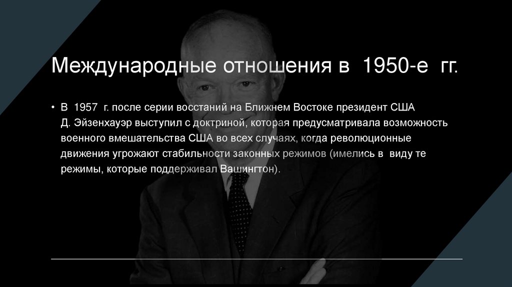 Международные отношения в 1950-е гг.• В 1957 г. после серии восстаний на Ближнем Востоке президент США