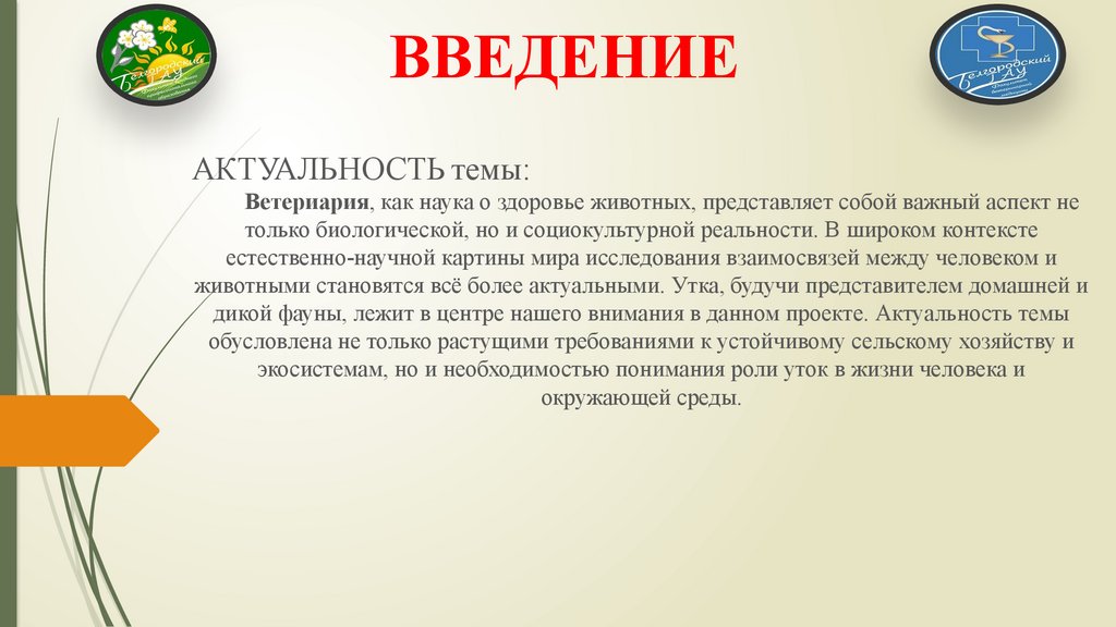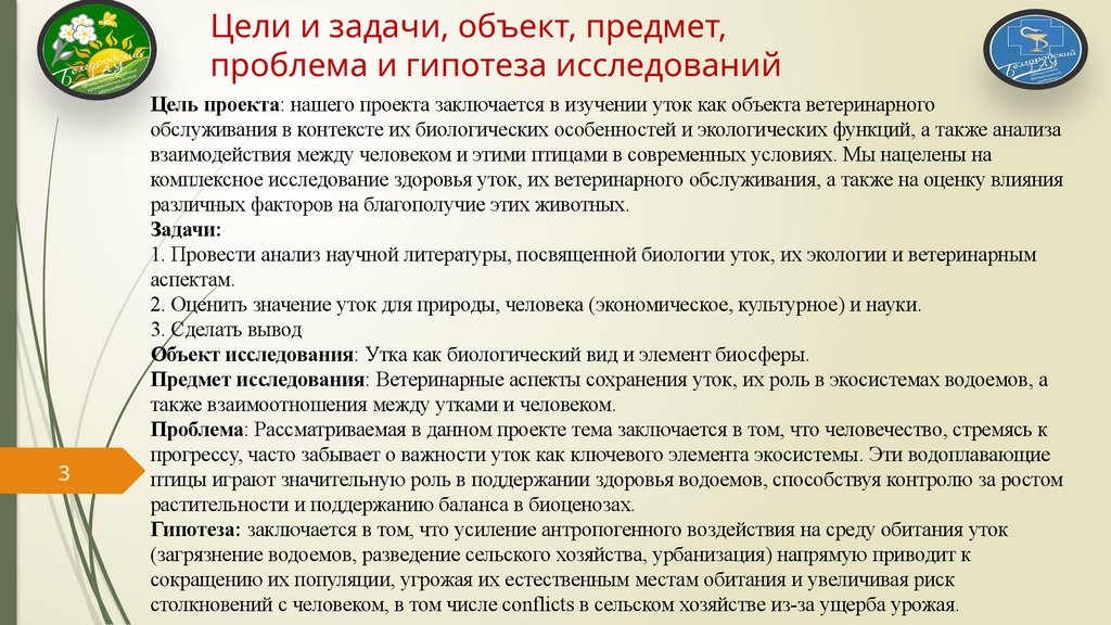 Цель проекта: нашего проекта заключается в изучении уток как объекта ветеринарного